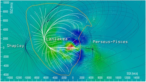 巨大的,称为拉尼亚凯亚的超星系团(Laniakea)是通过一个超大吸引力的平盆相互连接而形成的,这片平盆能持续延伸并同时吸引着整个超星系团。它似乎就是一个连接了大约100,000个星系的公路,并且也能让星系在整个宇宙中移动。 这将帮助研究人员了解了配备给三维空间的速度,以更好地了解宇宙是如何运作的,以及我们在宇宙中的位置是如何受到超星系团的影响。