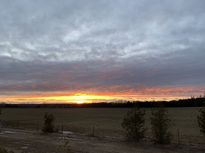 家住加拿大安大略省马尼图林岛(Manitoulin Island)的麦克诺顿(Christine McNaughton)在推特上发布了这张夕阳照,立刻吸吸引网友目光。半圆形的落日周围,环绕着3圈渐层光晕,就像是超巨型的橘色彩虹挂在远方的山边,麦克诺顿起初以为这是罕见的“幻日”(Sun dogs)现象,因此她决定联系专家与新闻媒体替这张美丽的照片解惑。