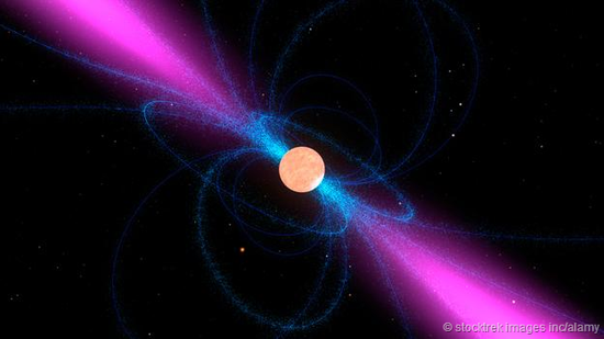 即便是最普通的脉冲星也非常不可思议。它们是宇宙中密度最高的天体之一,它们是质量约为太阳8~20倍之间的大质量恒星爆发衰亡之后留下的遗骸。当这样的大型恒星耗尽它最后的燃料并逐渐走向死亡之时,将会以超新星的方式发生猛烈爆发,在此过程中将其外层气体壳完全剥离。