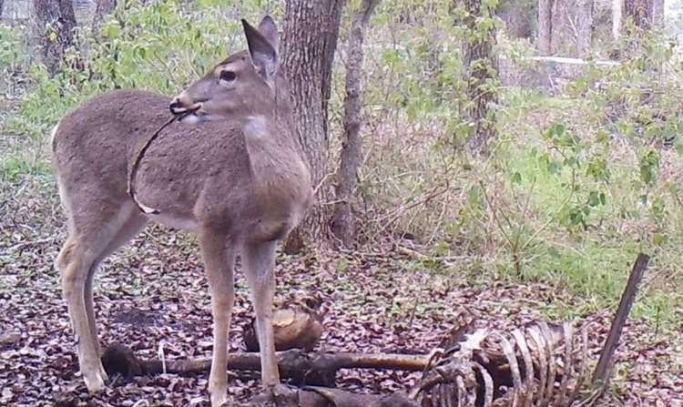 德州州立大学(Texas State University)法医人类学研究所(Forensic Anthropology Research Facility)的动态感应相机记录到一只吃人的鹿。这是一块占地10公顷(26英亩)的“尸体农场(body farm)”,法医科学家在此研究人体如何在野外分解。尽管很大一部分是看到野生动物如何与尸体互动,但他们并不期待白尾鹿来凑一脚。