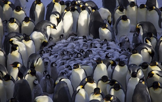 10. 企鹅间的小默契:皇帝企鹅会一同取暖,而且为了保证中间的同伴不会“中暑”,每隔30~60秒它们就会“互相交换”。