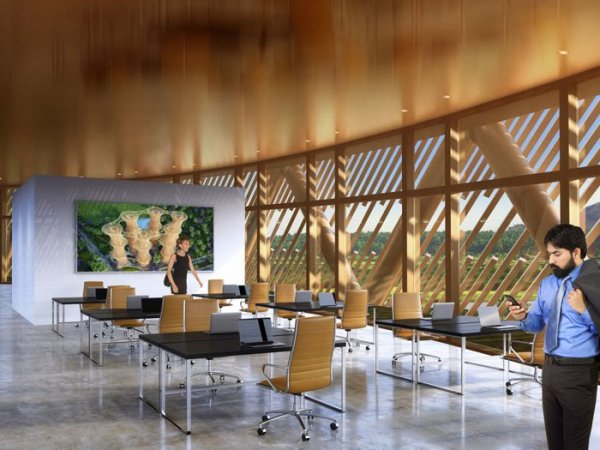 设计的这个“垂直村”能为企业提供灵活的空间,在太阳能外墙的一面进行办公,而生活空间则紧依水培绿色阳台。