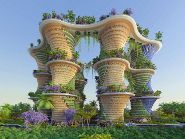 《阿凡达》虚构世界中的有机曲线设计离我们其实并不远。印度农业生态学家 Amlankusum 和法国的文森特·嘉利宝事务所(vincent callebaut architectures)发布了关于垂直“生态街坊”的计划,名为Jaypee绿色体育城。