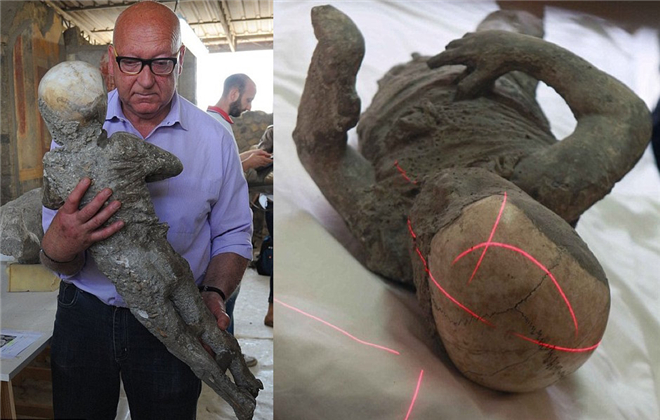 有数据显示,当时有2000多人死于庞贝古城,让这个文明当下瞬间灭亡,直到1748年才被再次发现。 图中是一名遇难儿童。