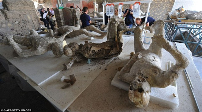 大约有100名罹难者的遗骸透过石膏保存下来,其中还有狗,被认为是当时的宠物。