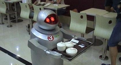 而根据计算器的计算结果,餐厅服务员被机器人取代的可能性也高达94%。中国的一家餐馆已经开始采用机器人上菜(如图所示)。