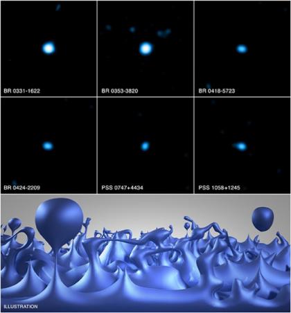 Perlman跟他的团队从类星体(邀远星系)寻找这样扭曲的证据(有些量子泡沫模型表示距离越远有些效应就会越明显)。这些类星体也是宇宙中最亮的物体。类星体的中间是一个超巨大黑洞,被许多气体、尘埃和其他物质给包围。物质被吸入黑洞时他会发出比任何星系都还要亮的光。