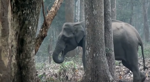 最近这个大象火了!看照片烟雾缭绕的,难道它在吸烟吗?动物也会有烟瘾吗?这一幕发生生在印度的Nagahrole国家公园里,有人看到这神奇一幕,就录了下来,从影片中能看到,一头大象将地上的木炭卷到口中,从嘴巴里冒出了很多白气,看着真的好像在“吸烟”。