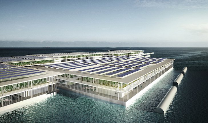 一间名为Forward Thinking Architecture的创新公司提出一个惊人的设计,飘浮在海洋的永续农场,这个计划叫做“智能漂浮农场”(Smart Floating Farms,SFF),顾名思议就是尽可能在许多国家中用最少农地来创造出自给自足的食物。
