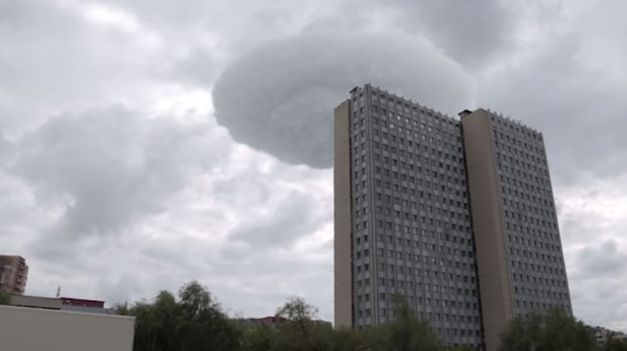 俄罗斯民众在莫斯科上空拍到一朵奇怪的云,外观酷似飞碟,因而引发网民讨论。有网民质疑说,外星人要登陆了吗?