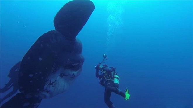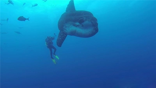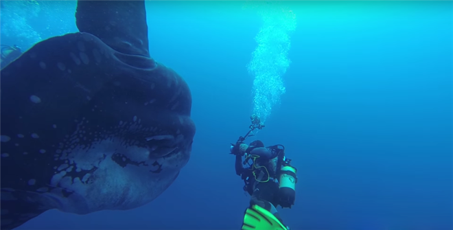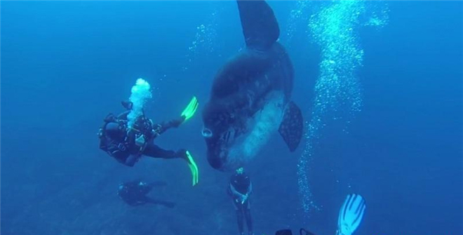 毫不奇怪他们能够看到这样的巨大翻车鱼,因为翻车鱼的体长能够达到4.2米,宽度能够达到60厘米。事实上《国家地理》杂志将翻车鱼描述为“就像一个巨大的浮动液滴”。这条温顺的大鱼向Pereira和他的潜水同伴们打起了招呼。