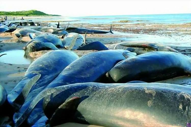 几分钟之后,人们才意识到领航鲸在“集体自杀”!男女老少赶紧用太阳伞﹑手帕为它们遮阳,并合力将一只只领航鲸推入海中。在大家全力抢救下,46只领航鲸重回大海,但仍有9只在沙滩上静静死去。