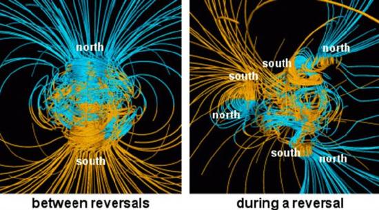 根据来自巴黎地球物理研究所(Institute of Earth Physics in Paris)的古地磁学专家Jean-Pierre Valet,磁极反转将会显著地减弱的地磁场强度。