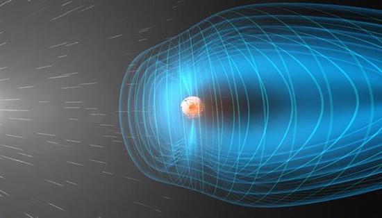 太阳源源不断地释放出强大的太阳风,地磁场能屏蔽这些有害的辐射,使生命得以在地球上繁衍生息。如果地球缺乏强磁场,这些辐射将对地球生命造成危害。