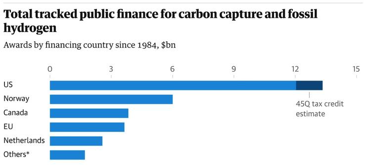 美国在这方面领先全球,截至目前为主,已经在碳捕捉项目中投入超过 120 亿美元:其中包括直接补贴化石燃料企业、以推动碳捕捉技术的研发与应用。这些资金大多数来自纳税人的钱,并且在“通膨削减法案”(IRA)的推动下,未来数十年内,碳捕捉技术将持续获得更多的税收优惠、和美国政府的财政支援。然而,这些巨额的投入并没有带来预期中的成果。根据 OCI 的资料,多数碳捕捉技术面临着严重的科技困境或是营运上的状况,导致这些补助项目经常出现超支、验收失败或是效益不足的状况。