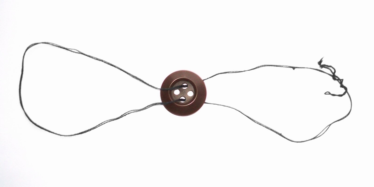施力在把手捲回细绳,引起中间的碟盘自转,一旦细绳完全松开捲回,就开始倒转,形成一个超级盘绕的结构。