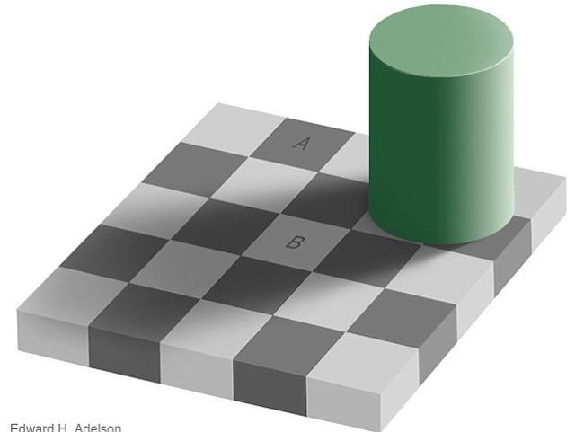 棋盘阴影错觉是麻省理工学院教授Edward H. Adelson于1995年所发表,因为人类的视觉系统会对所看到物体在真实世界的颜色做出判断。在这种情况下,要确定阴影之下棋盘棋格的颜色,只从眼睛所接受的实际光线是不够的,人类视觉系统使用了几个技巧来进行补偿,以确定表面灰“漆”的颜色。这种效果确实表明了人类视觉系统的成功,而不是故障。