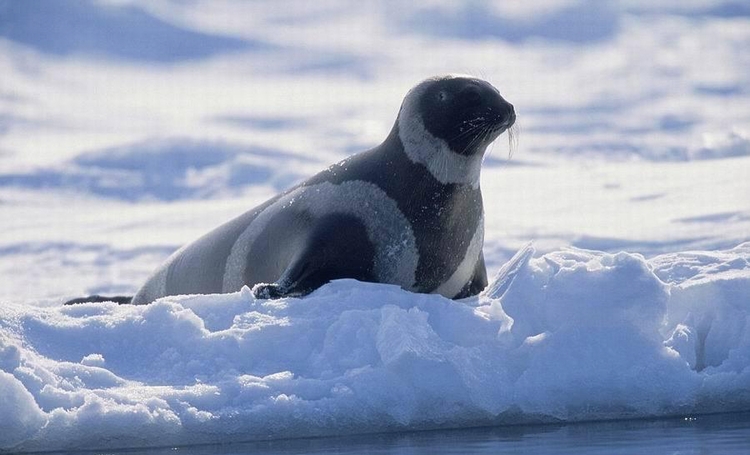 成年带斑海豹黑色的身体上有四个白色的环带,而刚出身的个小海豹则是通体雪白。