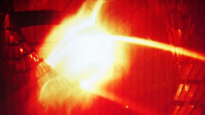 核融合能源试图复制为太阳提供动力的反应。在太阳里的两个非常轻的原子,例如氢或氦,融合在一起。
