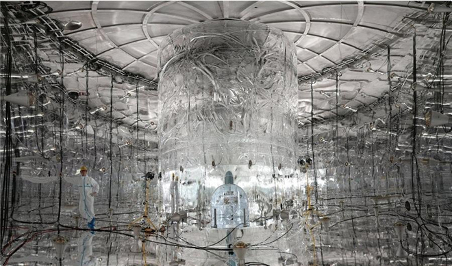 超级神网探测器:超级神网探测器(Super K)是一座中微子观测站,它建造在日本西部山脉下超过3000英尺的地方。这座巨大的探测器含有5万吨的纯水,周围被大约11200个光电倍增管所包围。与IceCube类似,Super K借助切伦科夫辐射探测中微子。现在研究人员正借助将一条180英里长的中微子束来进一步探测这些振动。