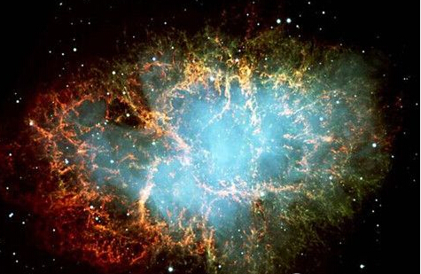 蟹状星云(Crab Nebula)是公元1054年由一颗恒星死亡爆炸形成的星云,当时中国古代天文学家在《宋会要》中对该天象进行了最详细的记录。这团膨胀的气体距离地球大约有6500光年左右,居于金牛座方向。