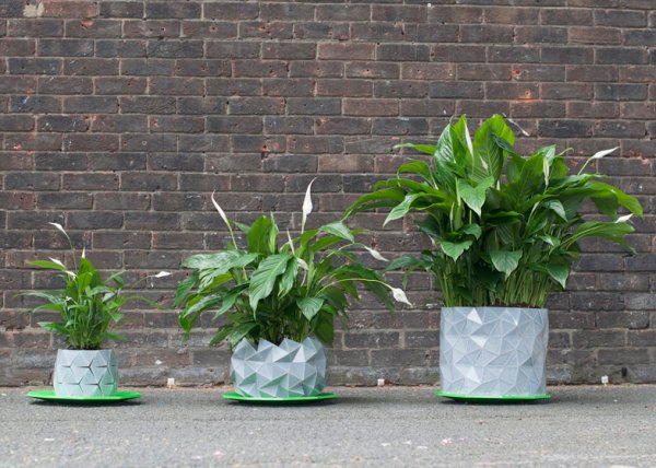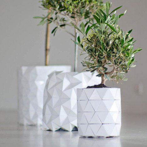 英国伦敦皇家艺术学院毕业生Begum和Bike Ayaskan设计了一款具有复杂折纸结构的花盆,能随着植物长大而展开,以提供更大空间。这套称为“Growth”的花盆由聚丙烯制成,并由计算机数控机床切割成由互相镶嵌的三角形组成的圆柱形。