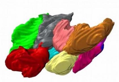 这是扫描电子显微镜下血红细胞的3D结构,每个需要鉴定的细胞都标注为不同颜色。