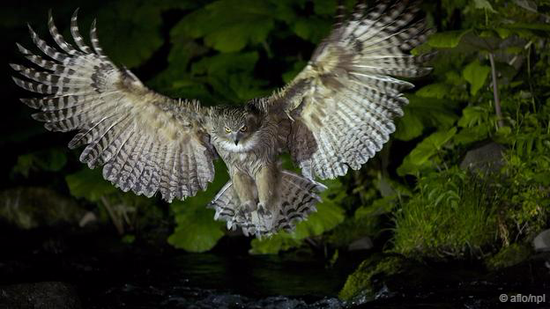 在 日本北海道,毛腿渔鸮在传统上被认为是保护土著阿伊努人村庄的精灵。如今,角色已经倒转过来,当地的环境保护人士利用巢箱内布置的相机,正密切关注着毛腿 渔鸮的生存状况。也正是有了这些巢箱,毛腿渔鸮的数量衰退趋势才被遏制。然而,没有了赖以生存的成熟森林,它们的未来并不明朗。