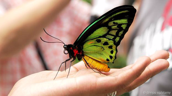在巴布亚新几内亚,有一种蝴蝶因为体型巨大,甚至被拿来与鸟类作比较。这就是亚历山大鸟翼凤蝶(Ornithoptera alexandrae),生活在北部海岸附近的一小片热带雨林中。