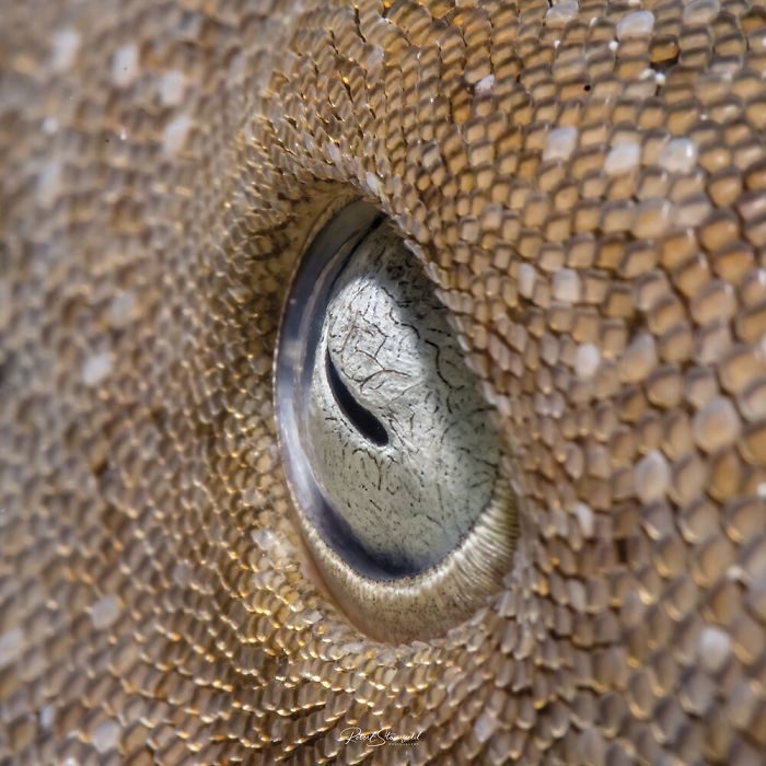 托马斯说,这张照片是在很浅的水中拍摄的。蜜月旅行时,他和妻子每天早上都去浮潜。在淤泥中,这只美丽的黄貂鱼出现了。他只有非常短的时间可以拍摄,因为淤泥散布在各处。黄貂鱼以沙子上的小动物为食。