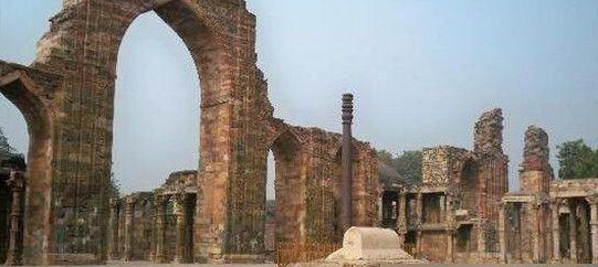 在印度德里城附近的麦哈洛里,矗立着一根公元五世纪铸造的巨大铁柱。这根铁柱高6.7米,直径约1.37米,用熟铁铸成,实心,柱顶有着古色古香的装饰花纹。据说这根铁柱是为纪念旃陀罗王而铸造的。