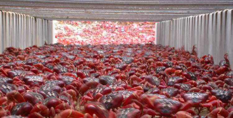 每年的11月到1月,是澳洲圣诞岛上名产“圣诞节红蟹”交配迁徙的季节,从高空俯瞰之下,有澎湖大小的圣诞岛,居然整个被一片鲜艳红色给彻底淹没,让看过的人忍不住边吐边赞叹,“真是世界珍奇物种百百种啊!”