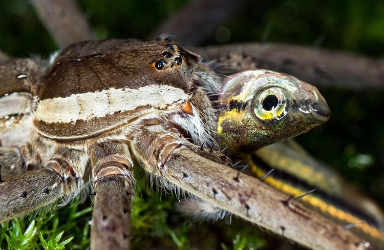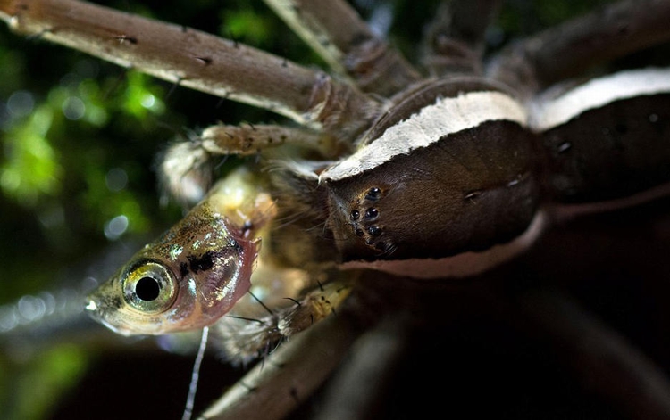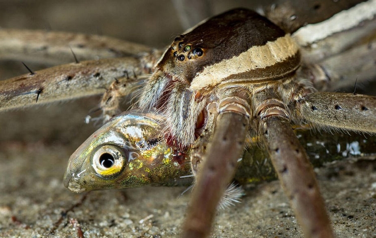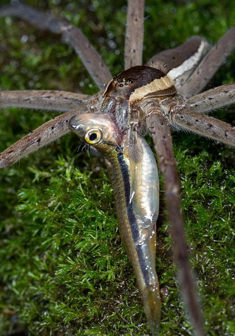 这些照片近距离地显示了一只水栖蜘蛛享用一整条鱼的过程,照片的清晰程度可能会让蜘蛛恐惧者们瞬间毛骨悚然。