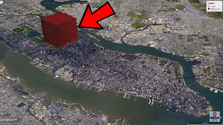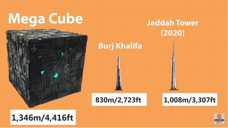 所以这个立方体的长跟宽必须是1.346公里,高必须是1346公尺。听起来很巨大,不过…