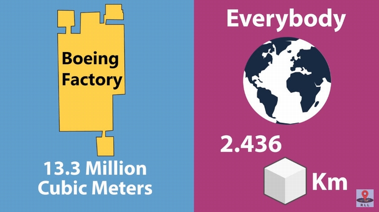 目前全球人口大约有74.78亿,如果要像塞进波音飞机工厂一样将全球人口都塞进去,我们需要2.436立方公里的建筑。
