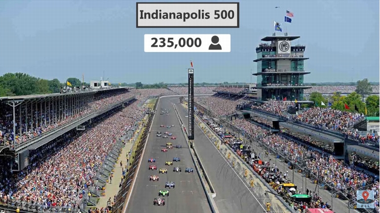 如果将范围移到户外体育场,那范围就更大了。印第安纳波利斯赛车场是世界上最大的户外体育馆,能容纳23.5万人。