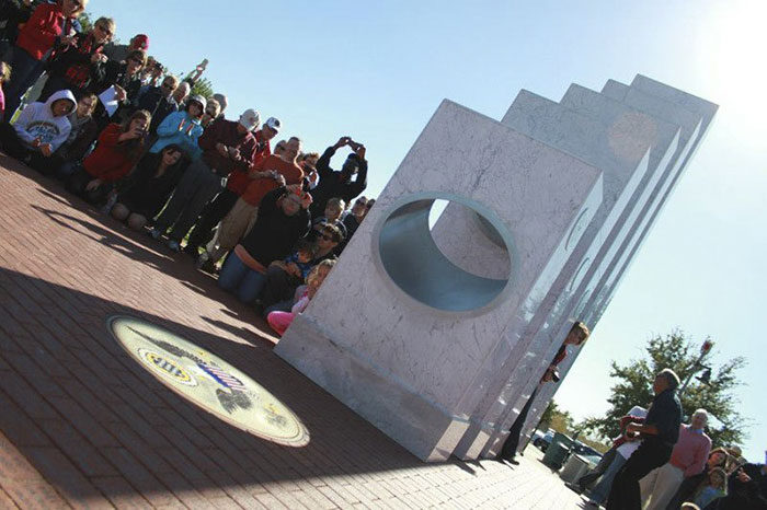 但一到了每年老兵节11月11日的上午11点11分,奇迹就会发生了!阳光会准确地穿过5个纪念碑,照亮地上的美国国务院徽章!