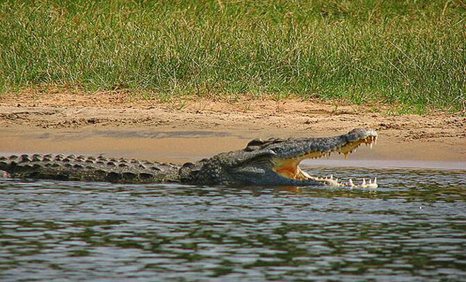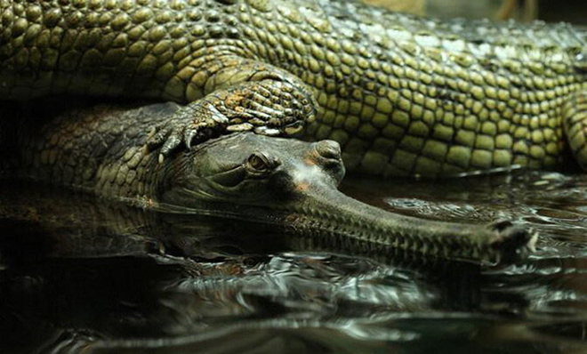 恒河鳄:恒河鳄体重大约250公斤,体长接近4.5米,有时也被称为“食鱼鳄鱼”。