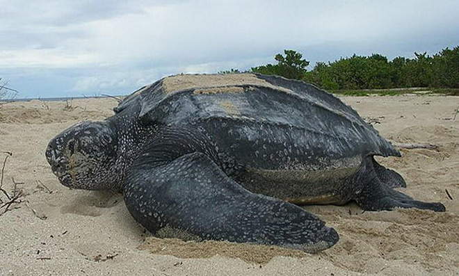 棱皮龟:棱皮龟是最重的海龟物种,不同于其它海龟物种,它的体重可达到364公斤,它并没有骨骼外壳,而是拥有厚厚的皮肤。棱皮龟的活动范围是大西洋和太平洋,它们主要以水母为食,尤为特殊的是,它们会在产卵地点之间迁徙数千公里,其体长达到两米。