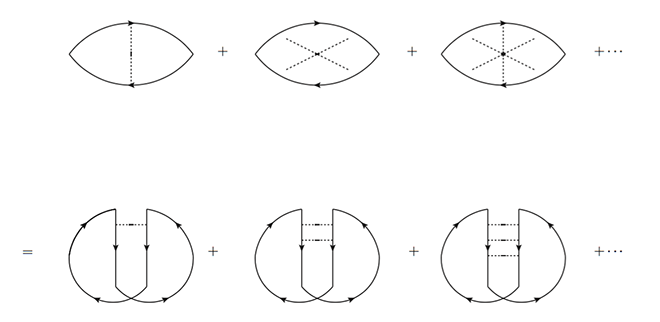 图一:计算 weak localization 时会遭遇的 Feynman 图。(我觉得他们看起来满可爱的。)