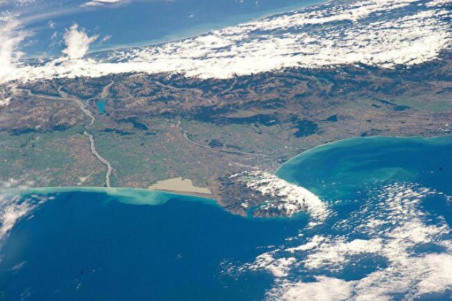 卫星所拍摄的地球海洋中某块陆地地貌。 (NASA via Getty Images)
