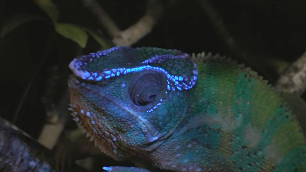 人们早就已经知道,从骨头会发出萤光(人的牙齿也会),但它们通常都隐藏在身体组织层的下面,因此常常紫外光都照不太到。但变色龙就不一样了,他们有奇怪的绝招:
