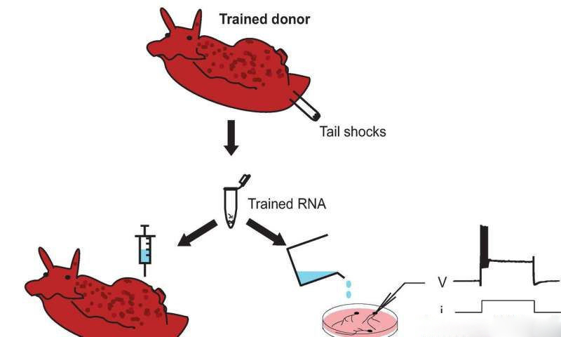科学家从遭电击蜗牛的神经系统取出RNA,再注射进未出现“敏感”反应的蜗牛体内,结果后者尾部出现好像被电击的反应,防卫性收缩持续约40秒。