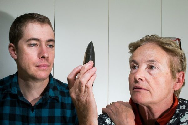 Sue O’Connor教授和博士学生Tim Maloney检查磨平斧头的最古老样品Australian National University