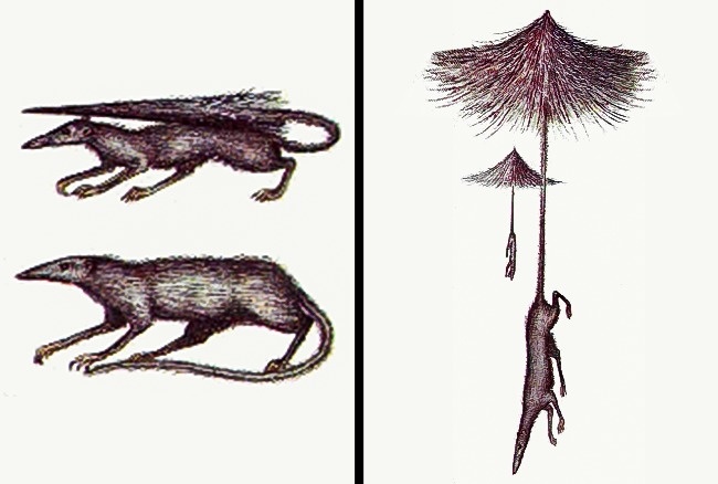 伞鼠 (Parashrew)学名Pennatacaudus volitarius,又称伞鼠,是一种栖息在山区的小型哺乳动物。幼年时尾巴即呈现伞状,靠着它们从父母的巢穴迁移。伞状的尾巴是进化的结果,它们跳要捕捉空中的昆虫时,靠尾巴来平衡器官。可能的未来栖息地是北美。