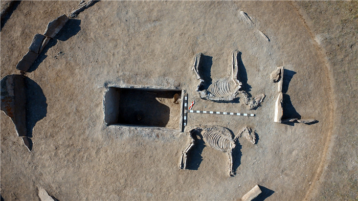 哈萨克考古学家最近有了一个令人震惊的发现,他们挖掘到一个大约5000多年前的坟墓,里面有两具被称为“罗密欧与朱丽叶”的骨骸,还有两匹一起陪葬的马匹,排列成像是马车的图案,被认为是能够将亡者载到来世。