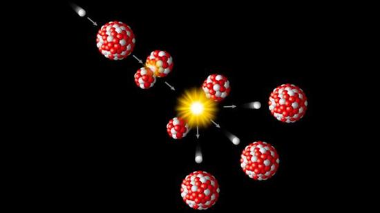 然而,原子并不是丝毫不动的,安静稳定地等待检验。很多时候,原子会发生衰变,这意味着它们具有放射性。自然界中存在许多自然发生的放射性元素,它们在放射过程中产生能量,形成核能以及核弹。核物理学家的主要研究内容是,深入了解核反应时所发生的基本变化。利物浦大学的劳拉-哈克尼斯-布雷南是伽玛射线的研究专家,她表示不同类型的放射性原子会产生不同的伽玛射线形态,这意味着通过探测伽玛射线能量就可以对原子进行辨别。布雷南解释说:“借助探测器我们可以测量射线的存在,以及射线储存的能量,因为所有的原子核都有其特症指纹。”由于在射线探测区,特别是大型核反应区中存在各种不同的原子,因此精确了解存在哪些放射性同位素非常重要。科学家通常在核能厂,或者发生核灾难的地区进行这种探测。目前,哈克尼斯-布雷南及其同事正致力于探测系统的研究,她表示:“我们要做的是研发科技装备和手段,对一个三维空间进行成像,发现辐射的存在区域。”云室是一种核辐射探测器,也是最早的带电粒子径迹探测器。它利用纯净的蒸气绝热膨胀,温度降低达到过饱和状态,这时带电粒子射入,在经过的路径产生离子,饱和气以离子为核心凝结成小液滴,从而显示出粒子的径迹,可通过照相拍摄下来。这种探测手段的实验结果的确令人惊叹不已。哈克尼斯-布雷南用一句话很好地阐述了原子:“尽管原子非常小,我们却能从中获取非常多的物理学知识。”
