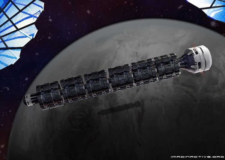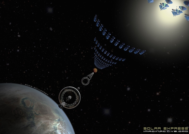 Imaginactive创始人Charles Bombardier发布了一个永不停止的太空火车概念:它削减了在加速和减速阶段所需要消耗能量的大部分燃料。太阳特快车(Solar Express)将在特定的地点搭载乘客和货物,在那里它将与其他较小的太空梭会合,因此它就不用一再地降落(和加速)。