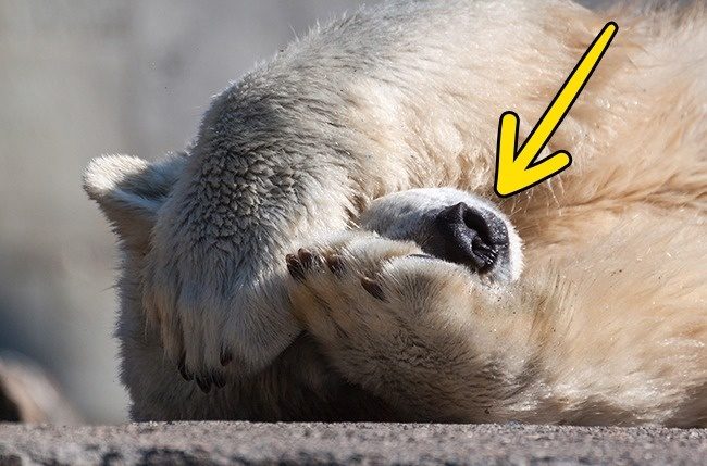 北极熊为了在雪地中隐形,他们会用爪子遮住黑色的鼻子。