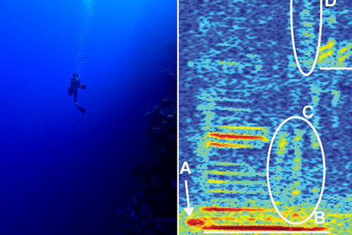 深海挑战者号录到一个3.5秒的录音特别怪异,特色是有一阵低鸣声紧随着像尖声的鸟鸣。